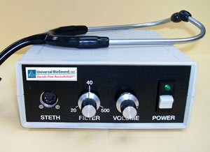 The Interface Kit (includes sensors, cable, and Electronic Module) is sold individually and with the BioSound ™ 400 Tele-Medicine System. The Interface Kit is designed and configured to work with ONLY the BioPad™ Sensors and BioFlex™ cables sold by Universal. The patented Interface Module is designed to filter, amplify and condition the BioPad™ sensor signals in a unique manner for optimum auscultation clarity, accuracy, and fidelity. The Unit operates on very low DC voltage and is FDA compliant and patient safe.